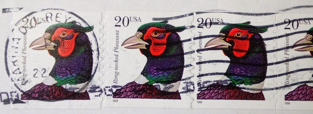 アメリカのキジの切手。 アメリカのキジは1881年、中国から輸入されたらしく、確かかどうか判りませんが、今では狩猟鳥とされているらしい。サウスダゴダ州の州鳥ともなっているようです。